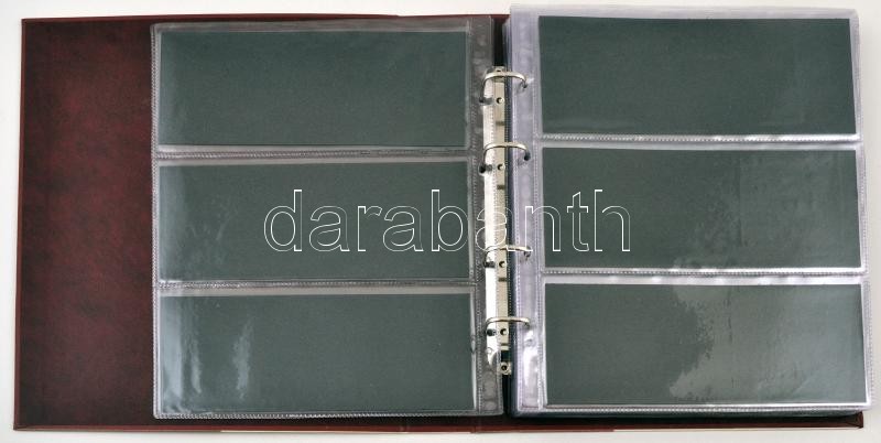 Beschreibung: Bankjegytartó album 35db berakólappal, 24db hármas és 11db kettes osztású berakólappal használt állapotban