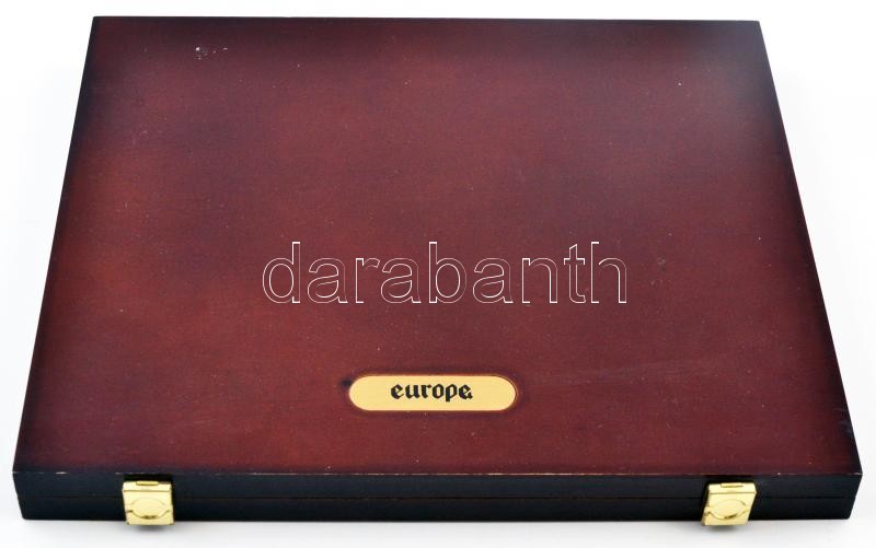 Beschreibung: "EUROPE" feliratú igényes fa, bársonnyal bélelt érmetartó kazetta 12db férőhellyel