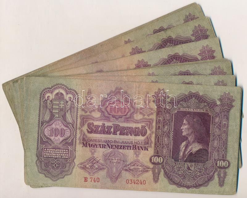 1930. 100P (50x) T:vegyes https://www.darabanth.com/de/251-Fernauktion/251.0/Numismatik/Ungarische-Banknoten~7/1930-100P-50x-Tvegyes~II1213809