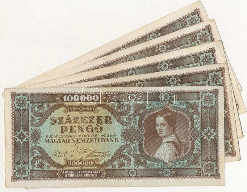 Beschreibung: 1945. 100.000P (30x) T:vegyes
