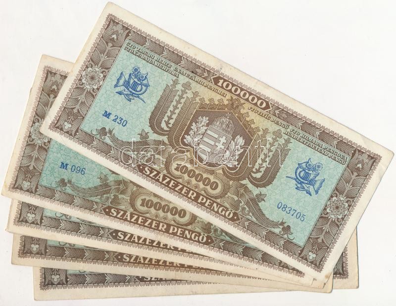 1945. 100.000P (30x) T:vegyes https://www.darabanth.com/de/251-Fernauktion/251.0/Numismatik/Ungarische-Banknoten~7/1945-100000P-30x-Tvegyes~II1213711