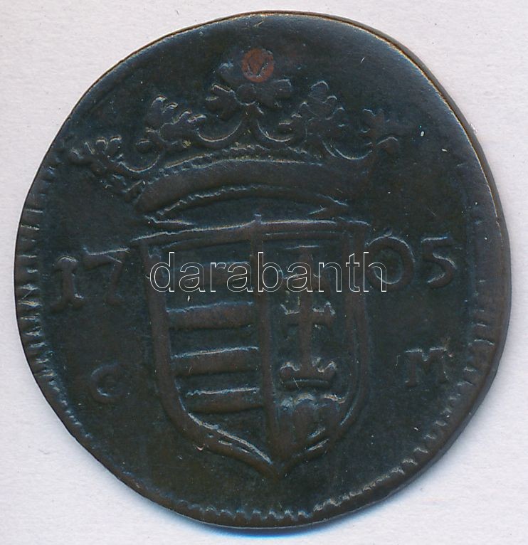1705CM X Poltura "II. Rákóczi Ferenc" Kassa (7,09g) T:3 lyuktömött Hungary 1705CM X Poltura "Francis II Rákóczi" Kaschau (7,09g) C:F plugged hole Huszár: 1540., Unger II.: 1133.c