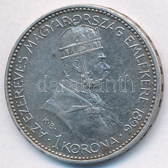 Adamo K5.2 https://www.darabanth.com/de/251-Fernauktion/251.0/Numismatik/Ungarische-Munzen~8/1896KB-1K-Ag-Millennium-T2--Adamo-K52~II1212489