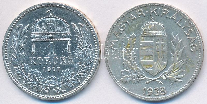1915KB 1K Ag "Ferenc József" + 1938. 1P Ag T:2 https://www.darabanth.com/de/251-Fernauktion/251.0/Numismatik/Ungarische-Munzen~8/1915KB-1K-Ag-Ferenc-Jozsef-plus-1938-1P-Ag-T2~II1209486