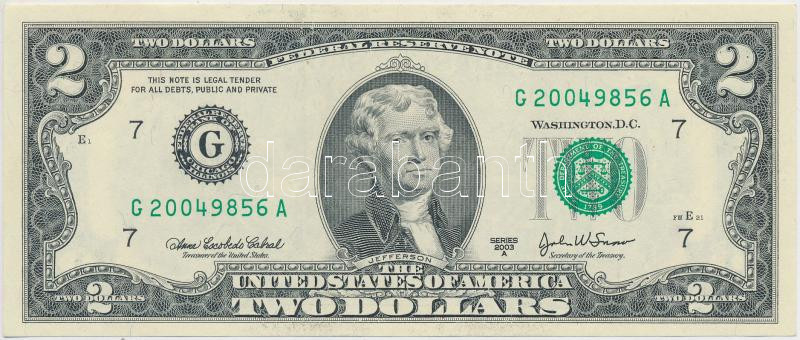 Amerikai Egyesült Államok 2003A 2$ "G" zöld pecséttel T:I
