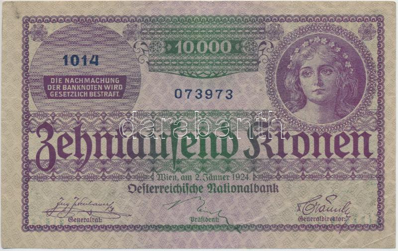 Austria 1924. 10.000 Kronen C:F https://www.darabanth.com/de/251-Fernauktion/251.0/Numismatik/Weltweit-Banknoten~11/Ausztria-1924-10000K-TIII--Austria-1924-10000-Kronen-CF~II1208649