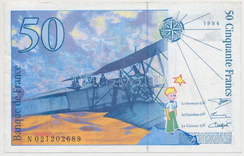France 1994. 50 Francs C:F https://www.darabanth.com/de/251-Fernauktion/251.0/Numismatik/Weltweit-Banknoten~11/Franciaorszag-1994-50Fr-TIII--France-1994-50-Francs-CF~II1211398
