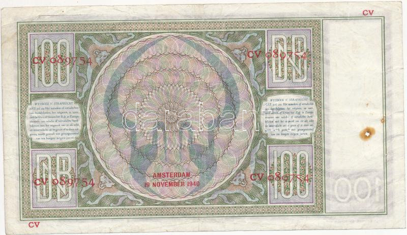 Netherlands 1940. 100 Gulden C:F hole https://www.darabanth.com/de/251-Fernauktion/251.0/Numismatik/Weltweit-Banknoten~11/Hollandia-1940-100G-TIII-ly--Netherlands-1940-100-Gulden-CF-hole~II1211136