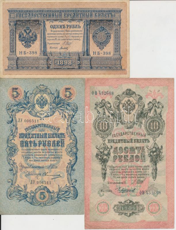 Russian Empire 1912-1917. (1898) 1 Ruble + (1909) 5 Rubles + (1909) 10 Rubles Sign.: Shipov C:F