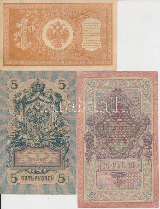 Orosz Birodalom 1912-1917. (1898) 1R + (1909) 5R + (1909) 10R Szign.: ... https://www.darabanth.com/de/251-Fernauktion/251.0/Numismatik/Weltweit-Banknoten~11/Orosz-Birodalom-1912-1917-1898-1R-plus-1909-5R-plus-1909-10R-Szign-Shipov-TIII--Russian-Empire-1~II1211406