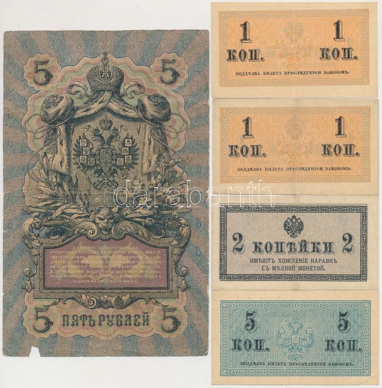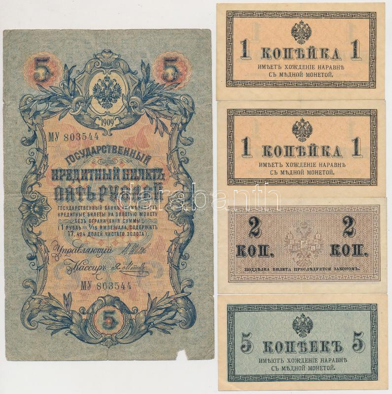 Beschreibung: Vegyes: Csehszlovákia 1945. 50K (2x) + Orosz Birodalom 1912-1917. (1909) 5R Szign.: Shipov + 1915. 1k (2x) + 2k + 5k T:III,III-