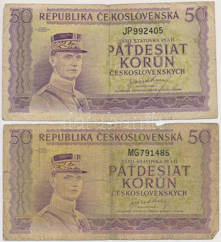 Vegyes: Csehszlovákia 1945. 50K (2x) + Orosz Birodalom 1912-1917. (190... https://www.darabanth.com/de/251-Fernauktion/251.0/Numismatik/Weltweit-Banknoten~11/Vegyes-Csehszlovakia-1945-50K-2x-plus-Orosz-Birodalom-1912-1917-1909-5R-Szign-Shipov-plus-1915-~II1211181