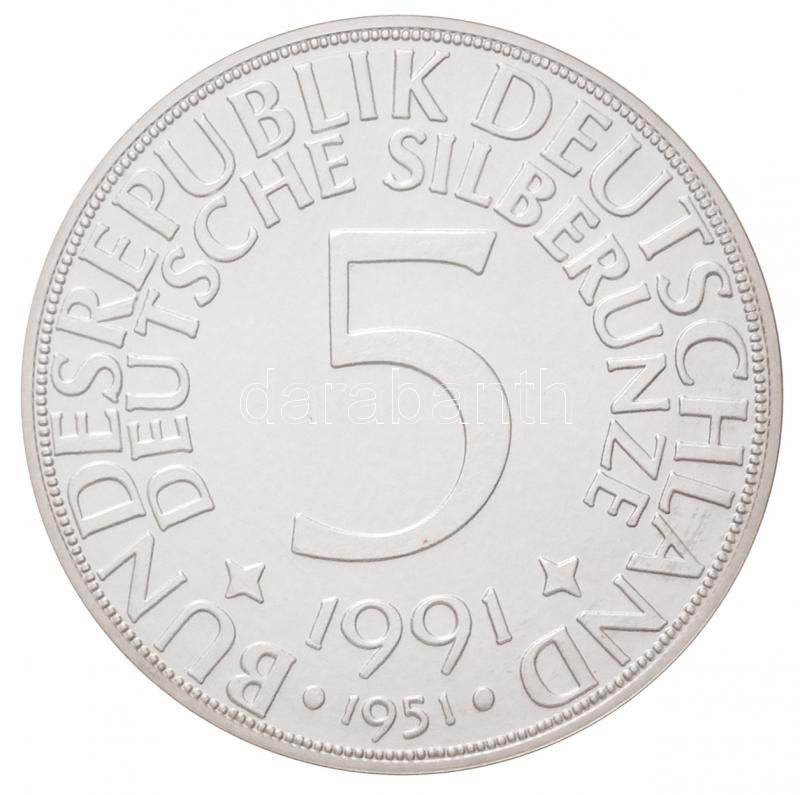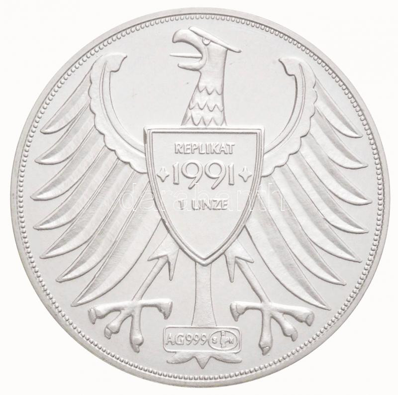 Németország 1991. "40 éves az 5 Márka" 1 uncia Ag utánveret laminált fóliatokban T:1