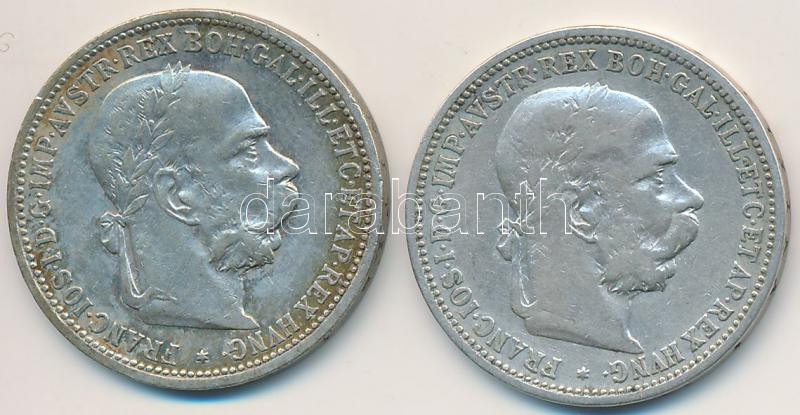 Austria 1893. 1 Corona Ag "Franz Joseph" (2x) C:XF,VF