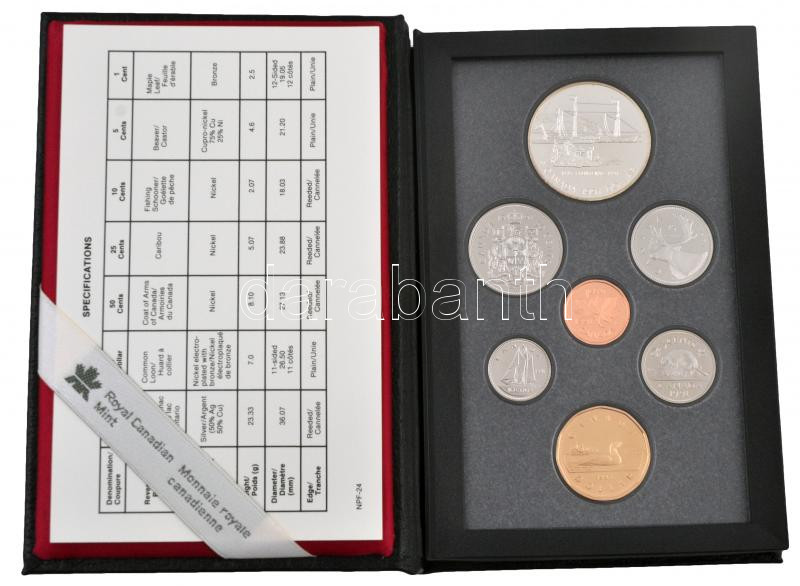 Kanada 1991. 1c-1$ (7xklf) benne 1$ Ag "S.S. Frontenac", fémpénz szett eredeti műbőr dísztokban, plasztiktartóban, tanúsítvánnyal T:PP