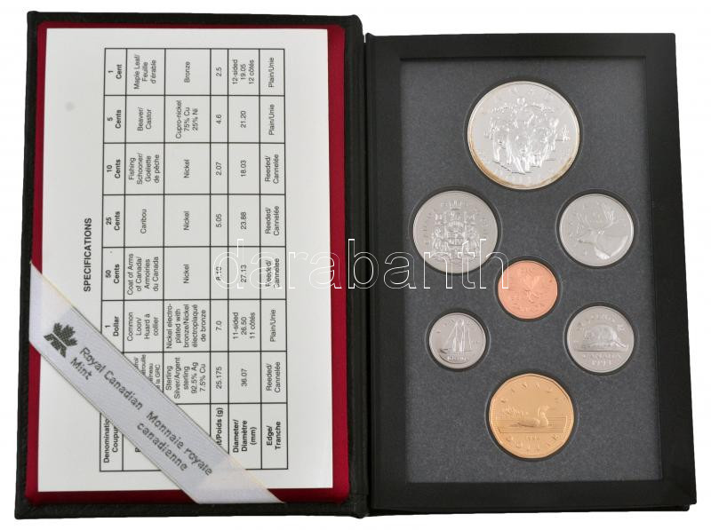 Kanada 1994. 1c-1$ (7xklf) benne 1$ Ag "Az utolsó hegyi kutya-szán járőr", fémpénz szett eredeti műbőr dísztokban, plasztiktartóban, tanúsítvánnyal T:PP