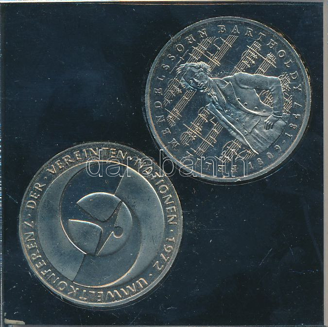 NSZK 1982F 5M "ENSZ Környezetvédelmi Konferencia 10. évfordulója" + 1984J 5M "Felix Mendelssohn Bartholdy születésének 175. évfordulója" mindkettő egy plasztiktokban T:2