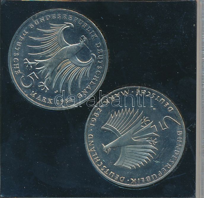 FRG 1982F 5 Mark "10th Anniversary - U.N. Environmental Conference" + 1984J 5 Mark "175th Anniversary - Birth of Felix Mendelssohn Bartholdy" both in a plastic case C:XF