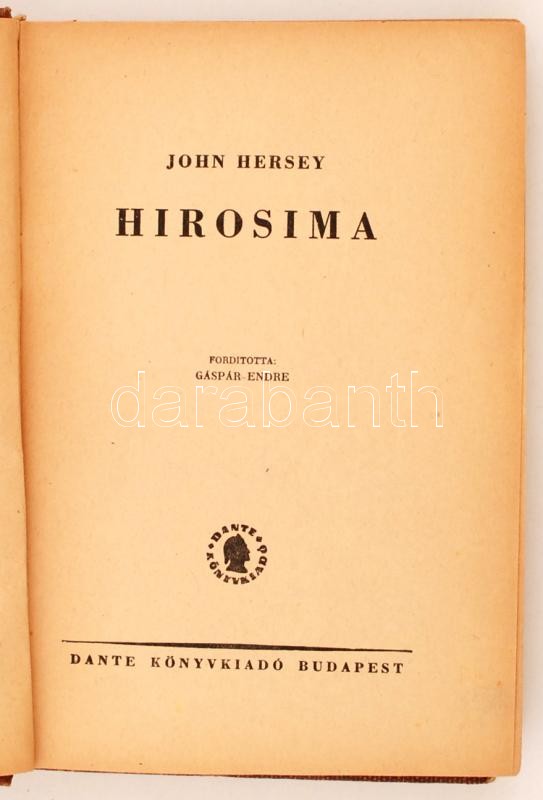 John Hersey: Hirosima. Bp., 1947, Dante. Kiadói aranyozott félvászonkö... https://www.darabanth.com/de/252-Fernauktion/252.0/Andere-Sammelgebiete/Bucher-Geschichte~800011/John-Hersey-Hirosima-Bp-1947-Dante-Kiadoi-aranyozott-felvaszonkotesben~II1221565