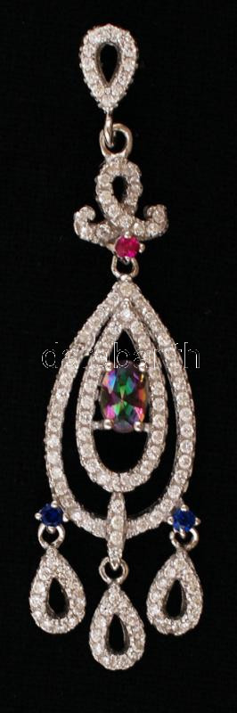 Beschreibung: Dekoratív ezüstszínű medál szintetikus kövekkel