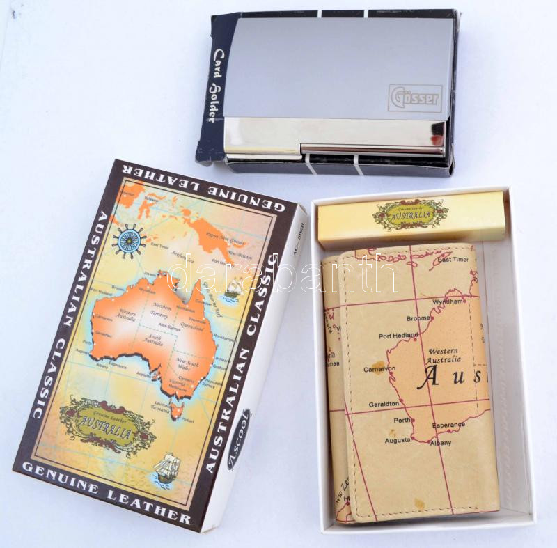 Kis vegyes bolha tétel: Erzsébet királynő büszt, gipsz, jelzett, m: 12 cm; Gösser fém névjegykártyatartó, saját dobozában; ausztrál kulcstartó, saját dobozában