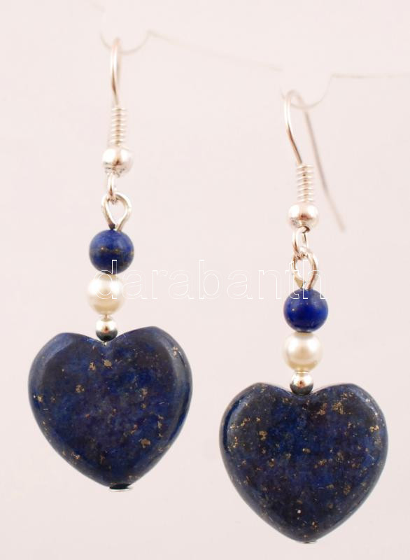 Beschreibung: Lápisz lazuli fülbevalópár szív alakú függőkkel, gyöngy díszítéssel