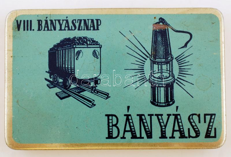VIII. Bányásznap feliratú fém cigarettás doboz, 7x11x1 cm https://www.darabanth.com/de/252-Fernauktion/252.0/Andere-Sammelgebiete/Flohmarkt~800020/VIII-Banyasznap-feliratu-fem-cigarettas-doboz-7x11x1-cm~II1219610