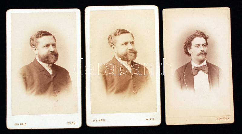 Beschreibung: cca 1870-1900 Férfi portrék, keményhátú kabinetfotók dr. Heid és Karl bécsi műterméből, 3db, cca 11x6cm