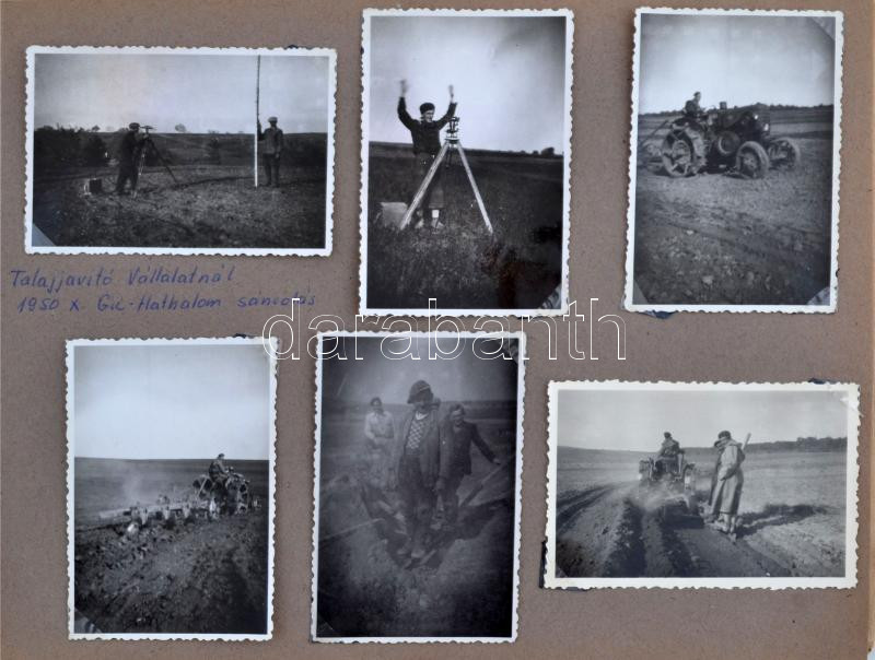 cca 1950 A rurális, vidéki élet képei. A Talajjavító vállalat munkái vidéken, családi fotókat is tartalmazó képgyűjtemény. Közel 100 db fotót tartalmazó album .