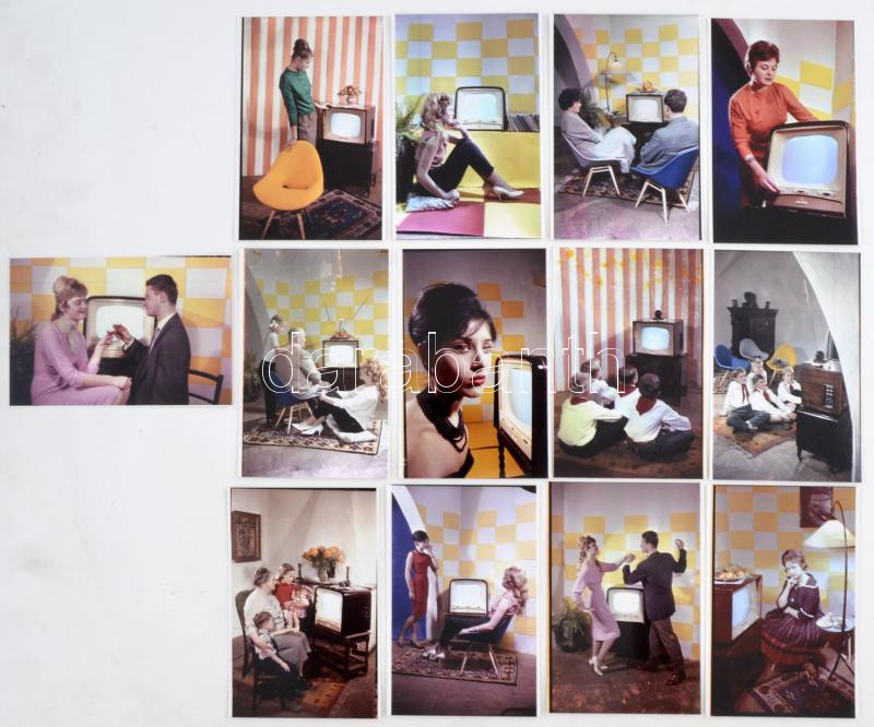 cca 1965 A televízió életünk részévé válik, reklámfotó sorozat, Kotnyek Antal (1921-1990) fotóriporter hagyatékában őrzött 13 db színes negatívról készült mai modern nagyítások, 10x15 cm