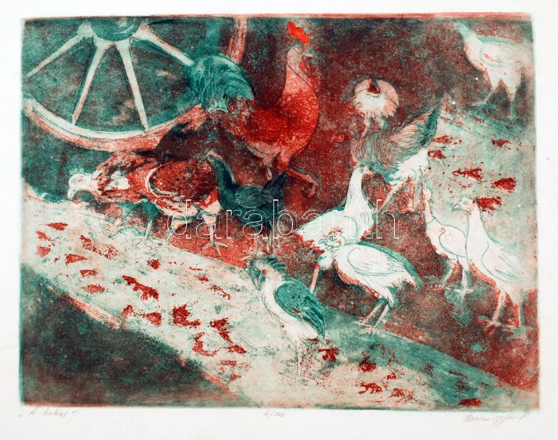 Beschreibung: Breznay József (1916-2012): A kakas, színezett rézkarc, papír, jelzett, számozott (4/100), 29,5×38,5 cm