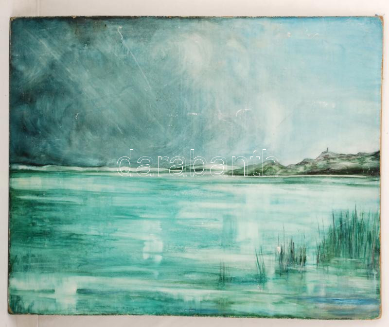 Beschreibung: Szász jelzéssel: Tihany. Olaj, farost, kopott, 50×61 cm