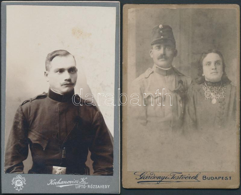 Beschreibung: cca 1900-1920 Keményhátú katonai fotók, (Gárdonyi testvérek, Bp., Kochanovics, Liptó-Rózsahegy),2db, 10x6cm