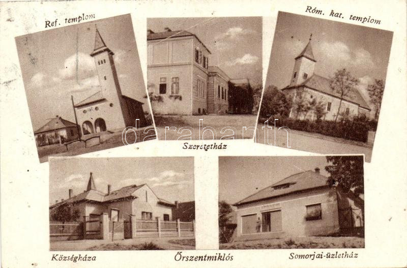 Őrszentmiklós, Őrbottyán; Somorjai-üzletház, Szeretetház, Községháza https://www.darabanth.com/de/252-Fernauktion/252.0/Ansichtskarten/Ungarn~200006/Orszentmiklos-Orbottyan-Somorjai-uzlethaz-Szeretethaz-Kozseghaza~II1214853
