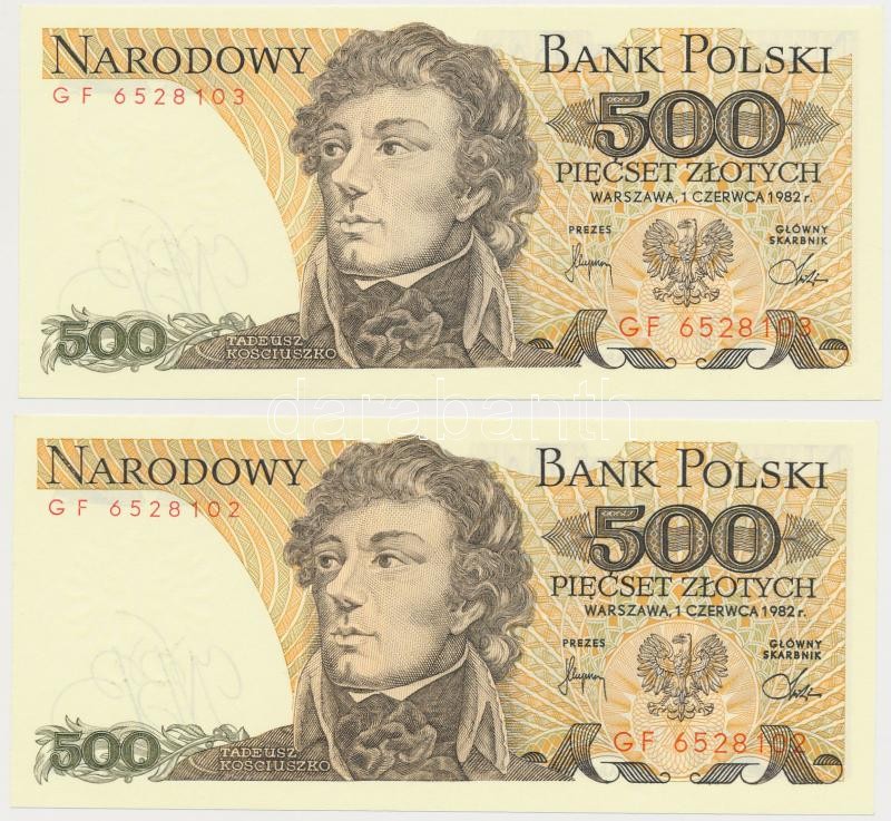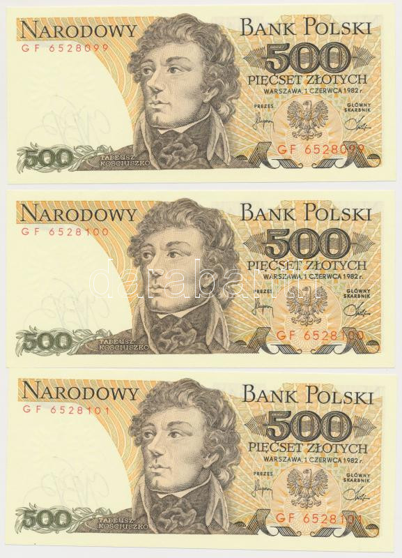 Poland 1982. 500 Zl... https://www.darabanth.com/de/252-Fernauktion/252.0/Numismatik/Weltweit-Banknoten~11/Lengyelorszag-1982-500Zl-5x-sorszamkovetok-TI--Poland-1982-500-Zlotych-5x-sequential-seri~II1220607