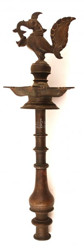 cca 19. század, keleti motívumos, kakassal díszített lámpatartó(?), bronz, jelzés nélkül, kopásnyomokkal, hiányos, m: 38 cm / cca 19th century, Antique lampstand(?) with Oriental motifs, decorated with rooster, bronze, with small wearings, h: 38 cm