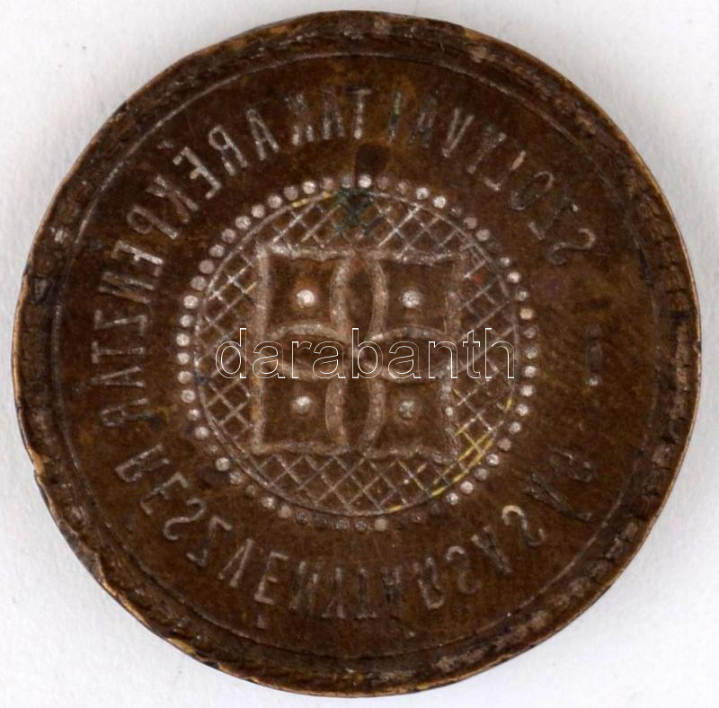Beschreibung: A Szolyvai Takarékpénztár Részvénytársaság réz pecsétnyomó feje, d: 3 cm