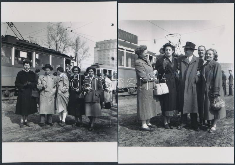 Beschreibung: cca 1947 Budapest, a Ganz irodaépülete előtt (mellett?) álló 4-es villamos, 2 db korabeli negatívról készült mai nagyítás, 18x13 cm-es fotópapíron