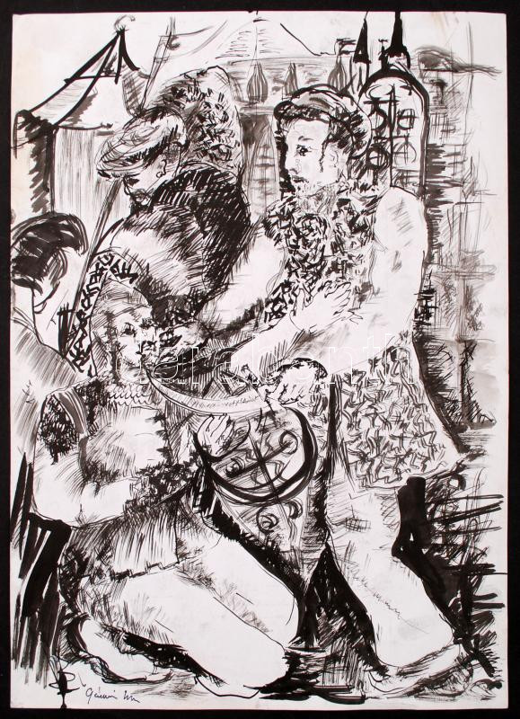Gácsi jelzéssel: Színpadi jelenet. Tus, papír, 41×29 cm https://www.darabanth.com/de/253-Fernauktion/253.0/Andere-Sammelgebiete/Gemalde-und-Grafiken~600349/Gacsi-jelzessel-Szinpadi-jelenet-Tus-papir-41C39729-cm~II1203292