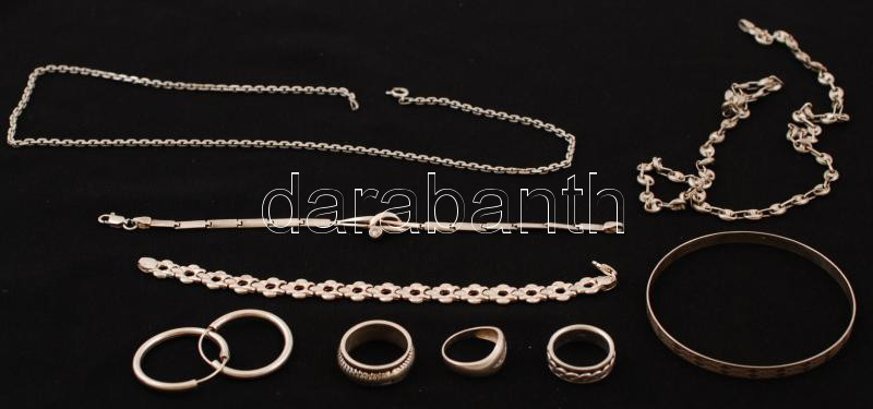 Beschreibung: Ezüst(Ag) ékszer tétel, nyakláncok karkötő, fülbevaló, gyűrűk, jelzettek, br: 64,5 g