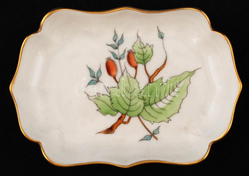 Beschreibung: Herendi csipkebogyómintás kis tálka, kézzel festett, hibátlan, jelzett, 8x11x1,5 cm