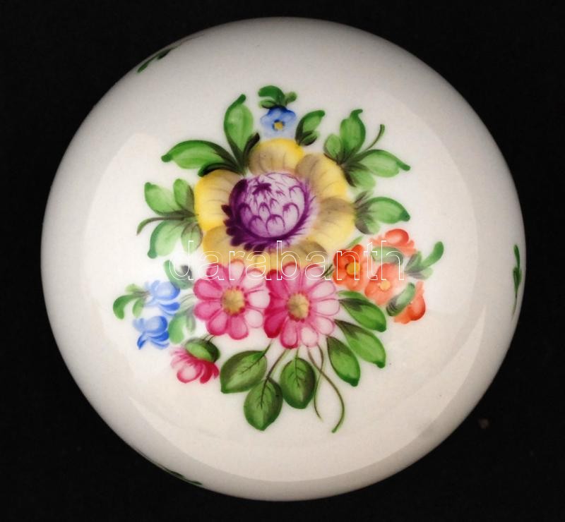 Beschreibung: Herendi virág mintás ékszertartó dobozka, kézzel festett, jelzett, hibátlan, d:7 cm