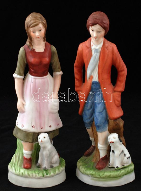 Beschreibung: Lány és fiú kutyával, kézzel festett bisquit porcelán, jelzés nélkül, hibátlan, m:25 cm (2×)