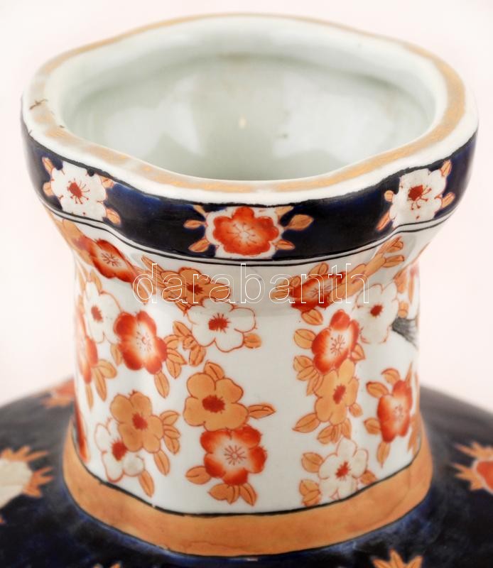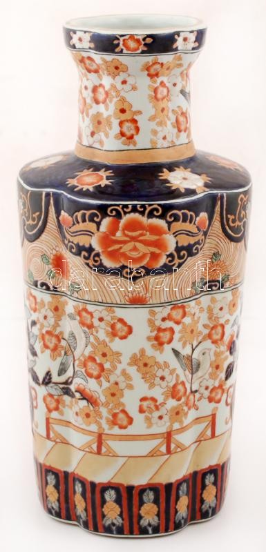 Beschreibung: Modern kínai imari mintás United Wilson porcelán váza, máz alatt repesztett, kézzel festett, jelzett ("UW 1897"), kopásnyomokkal, m: 36 cm