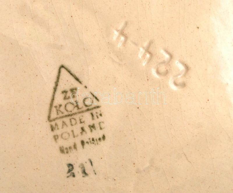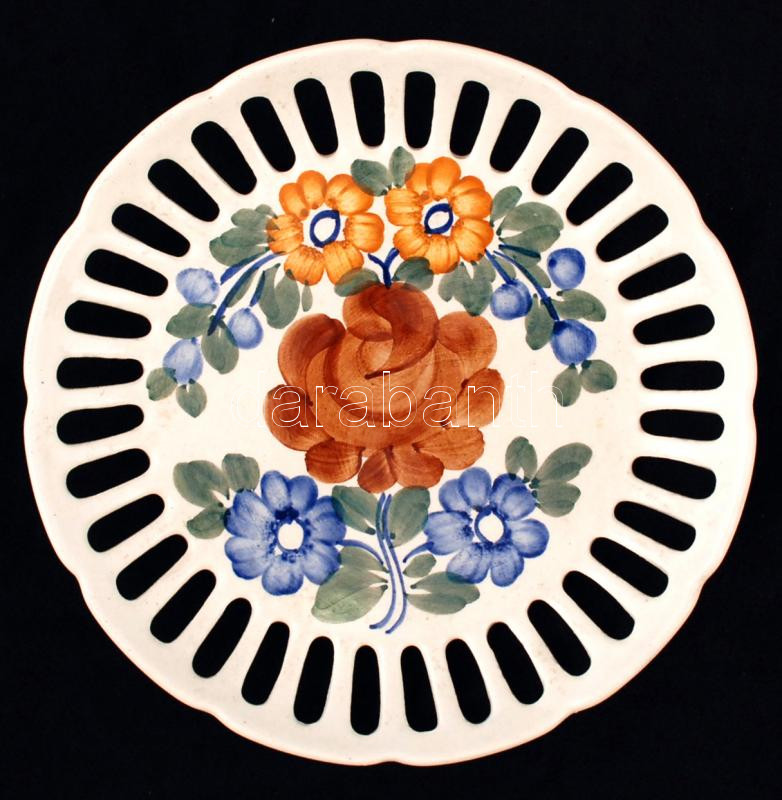 Włocławek lengyel porcelán gyertyatartó, kézzel festett, jelzett, apró kopásnyomokkal, m: 22 cm + ZF Koło lengyel porcelán áttört tál, kézzel festett, jelzett, apró kopásnyomokkal, d: 24,5 cm