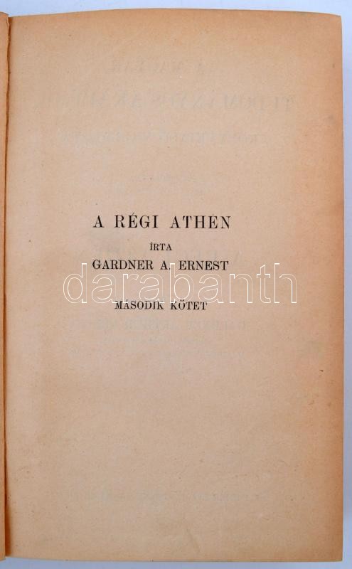 Gardner A. Ernest: A régi Athén. I-II. Bp. 1911-12. MTA. 264+363 p. Kihajtható térképekkel, gazdag képanyaggal. Kiadói aranyozott egészvászon sorozatkötésben. Szép állapotban.