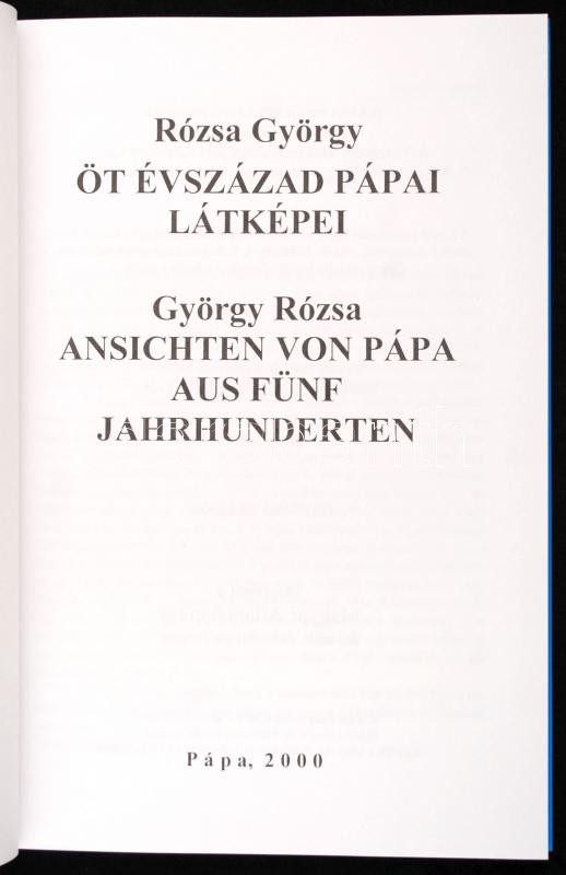 Rózsa György: Öt évszázad pápai látképei - Ansichten von Pápa aus fünf Jahrhunderten. Pápa, JMVK, 2000. Magyar-német nyelvű kiadvány. Kihajtható képekkel. Kiadói kartonált papírkötésben.