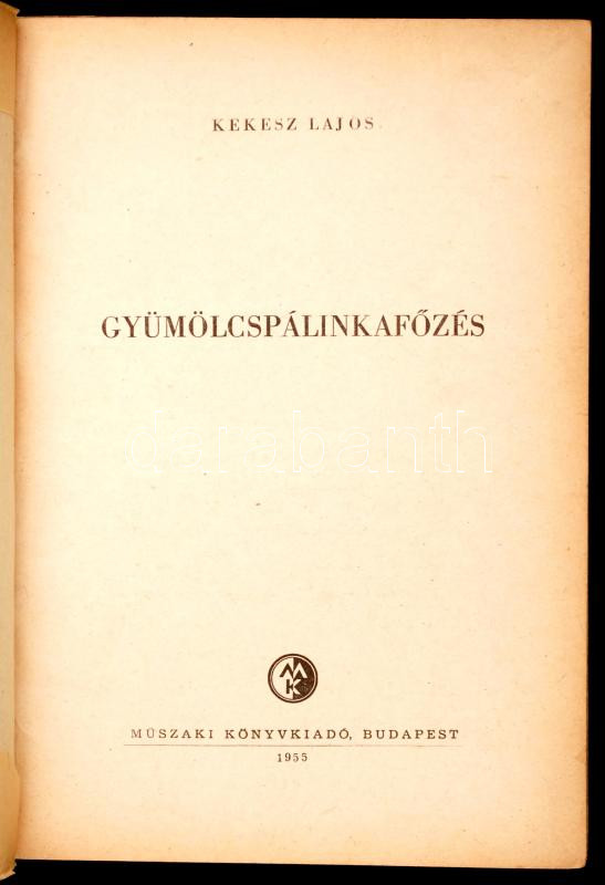 Kekesz Lajos: Gyümölcspálinkafőzés. Bp., 1955. Műszaki. 98 p. Fűzve, k... https://www.darabanth.com/de/253-Fernauktion/253.0/Bucher-Landkarten-Drucksachen/Bucher-Kuche-und-Garten~400018/Kekesz-Lajos-Gyumolcspalinkafozes-Bp-1955-Muszaki-98-p-Fuzve-kiadoi-boritekban~II1223304