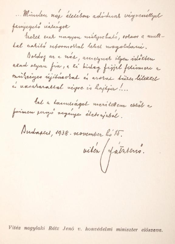 Bp., é.n., Turul Szépmíves Könyvkiadó. Vitéz nagylaki Rátz Jenő v. honvédelmi miniszter előszavával. A szerző aláírásával. Kiadói aranyozott vászonkötésben.