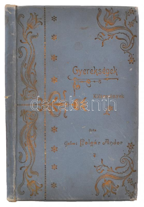Polgár Andor: Gyerekségek. Költemények. Szolnok, 1899, Bakos István. A szerző által szüleinek dedikált példány. Kissé kopott, aranyozott, díszes vászonkötésben, egyébként jó állapotban.